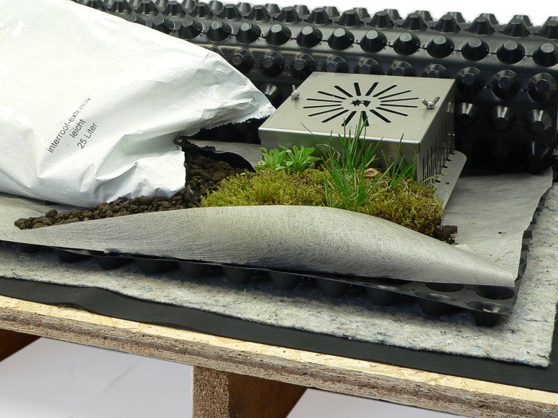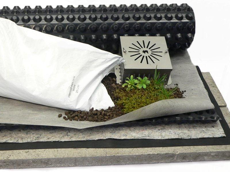 Die wohl wichtigste Schicht ist die Dränageschicht, die Niederschlagwasser speichert und überschüssiges Wasser herausleitet. Hierfür bietet unsere wasserspeichernde Dränagebahn – die HDPE NB 20 - 150 – eine ideale Lösung. Da diese außerdem über eine Filterfunktion verfügt, kann unser Leichtsubstrat direkt aufgetragen werden, was einen zusätzlichen Arbeitsschritt spart.